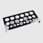 Suportul mare din metal are 23 spații pentru fixarea recipienților cu pigmenți.
